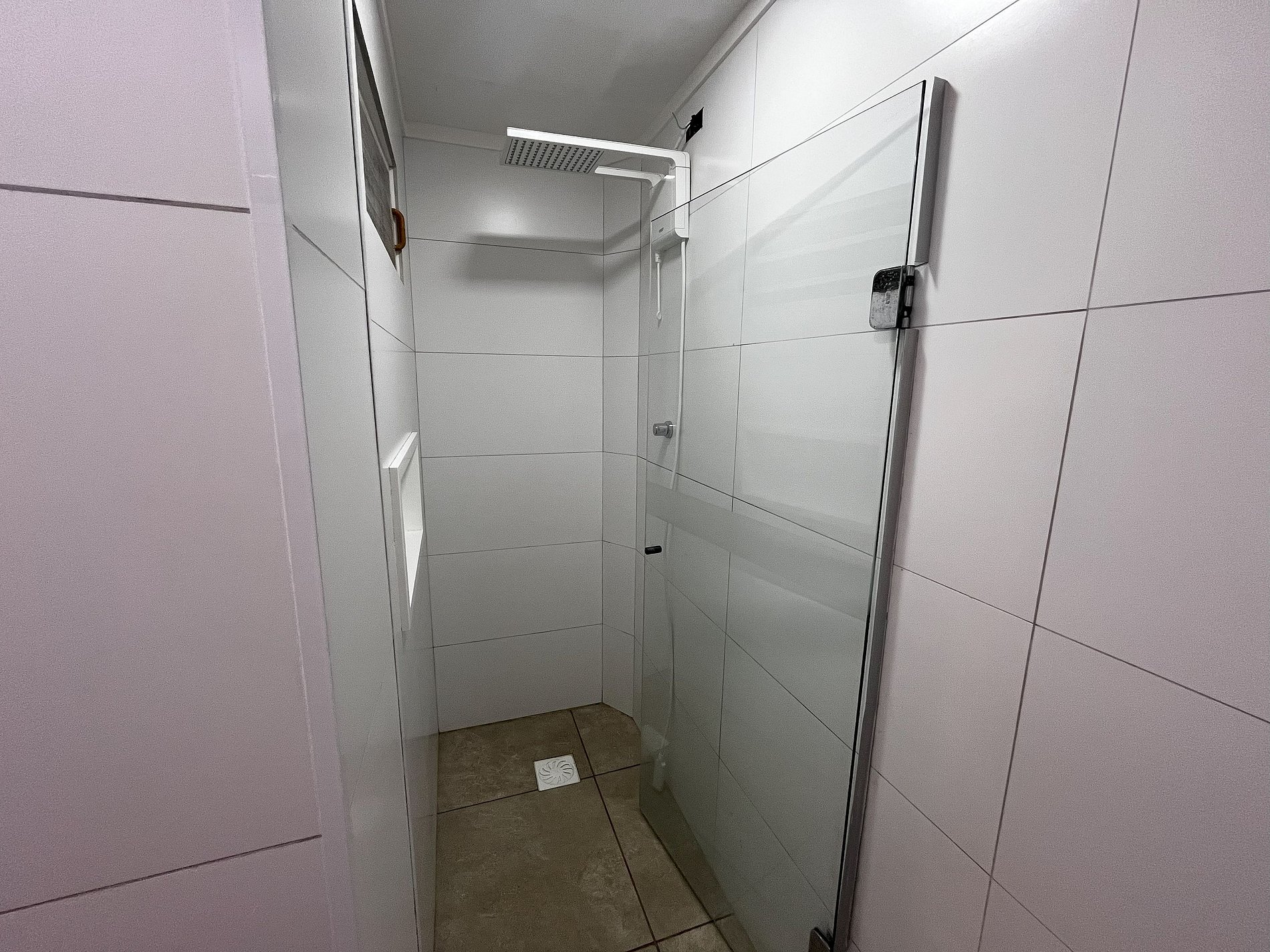 - Um dormitório com cama de casal, ar condicionado, guarda roupa, colchão solteiro;