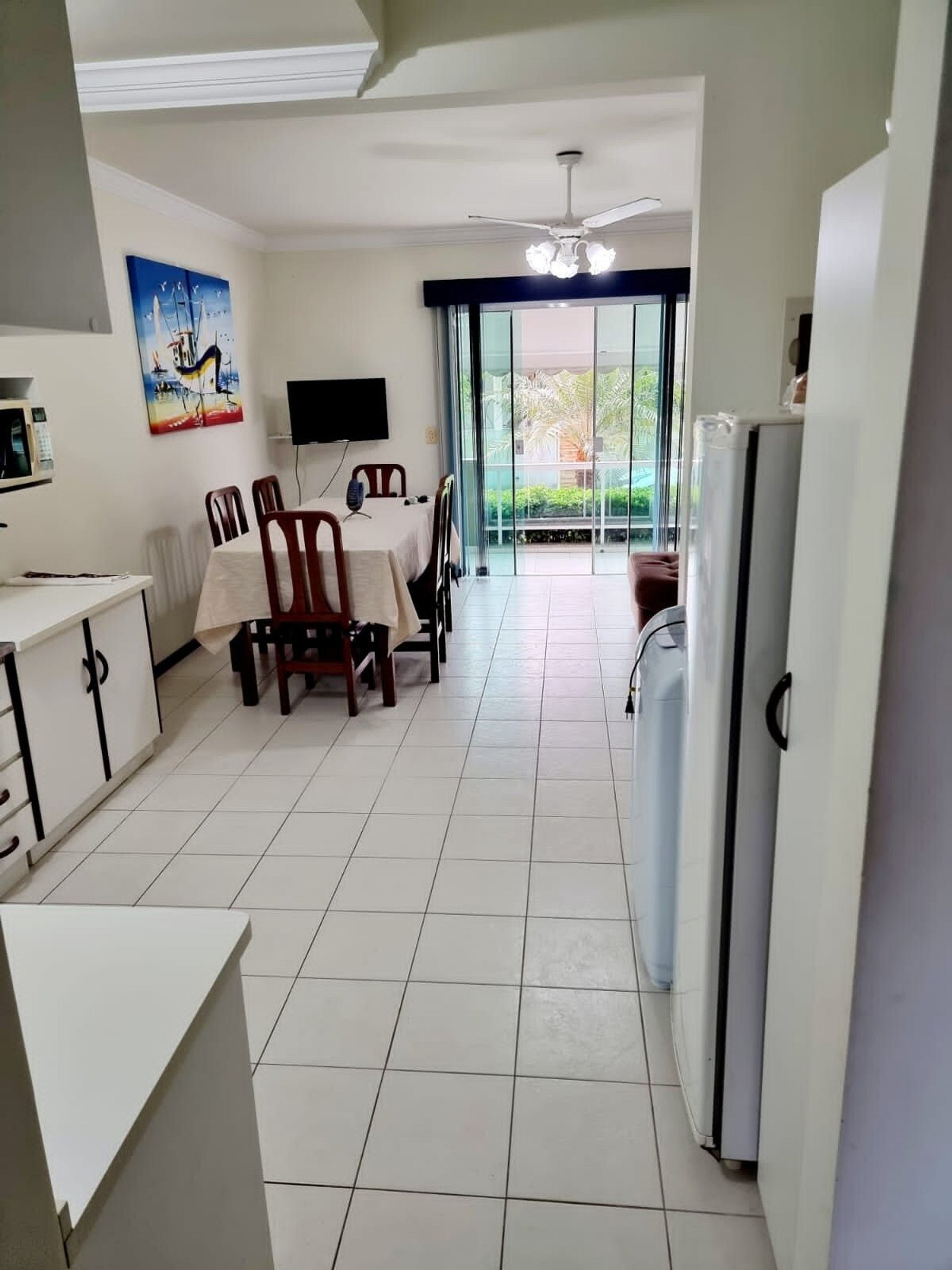 - Sala de estar com sofá, ar condicionado, Tv smart, ventilador de teto, mesa com 6 lugares e integrada com a cozinha equipada com utensílios, talheres, pratos,copos, panelas, liquidificador, torradeira, cafeteira, micro-ondas, fogão, geladeira, máquina de lavar;
