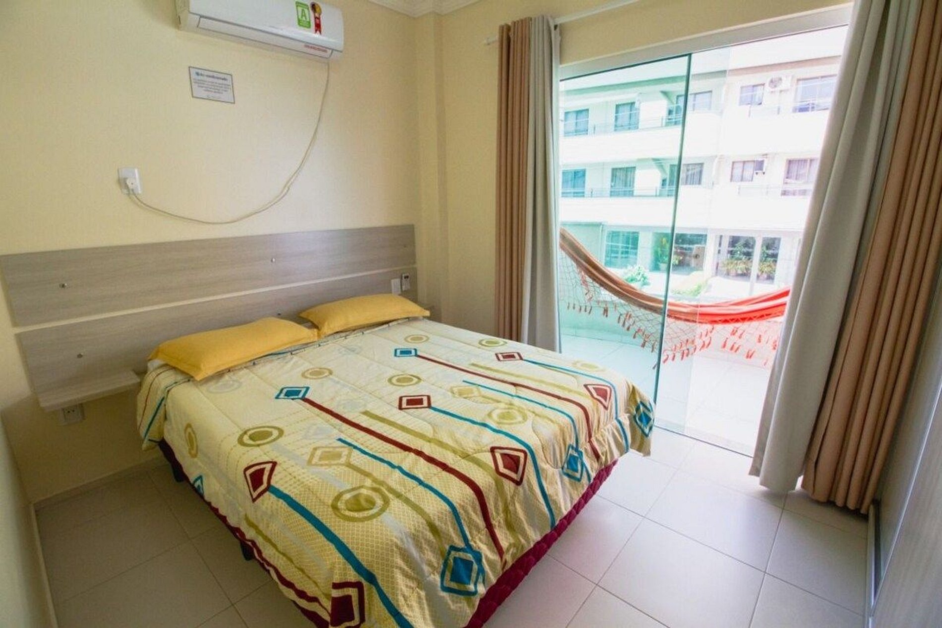 - 1 Quarto consta uma cama de casal e um beliche para 2 pessoas, guarda roupa, ar condicionado e ventilador de teto;