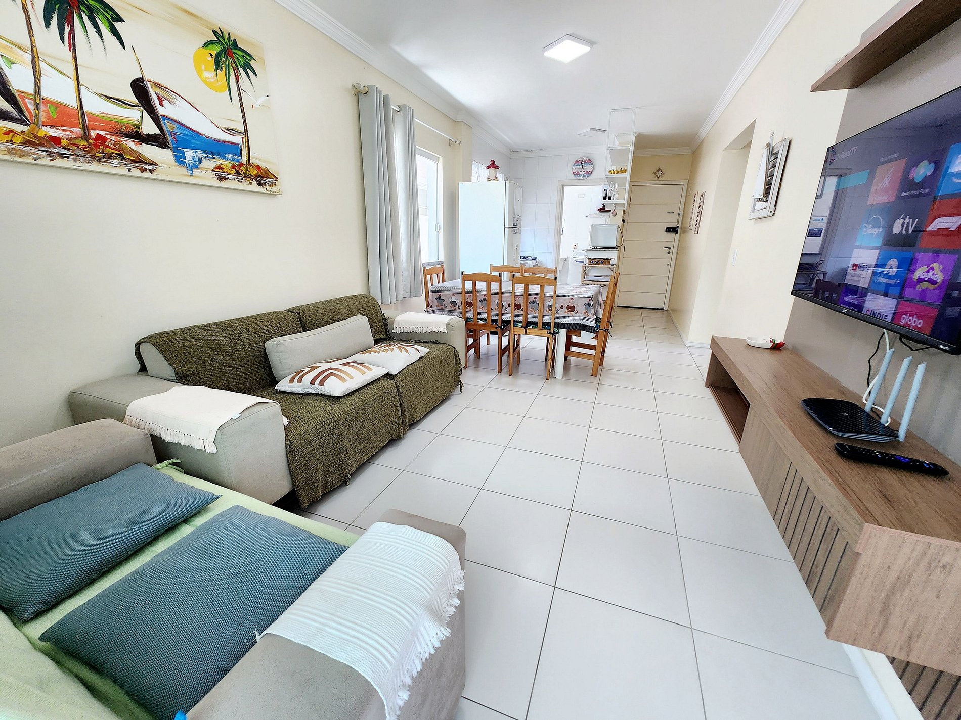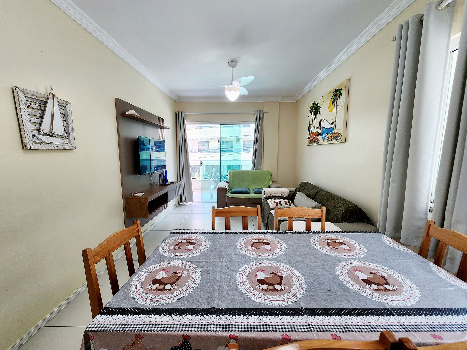 - Sala consta dois sofá, ventilador de teto, TV Smart;