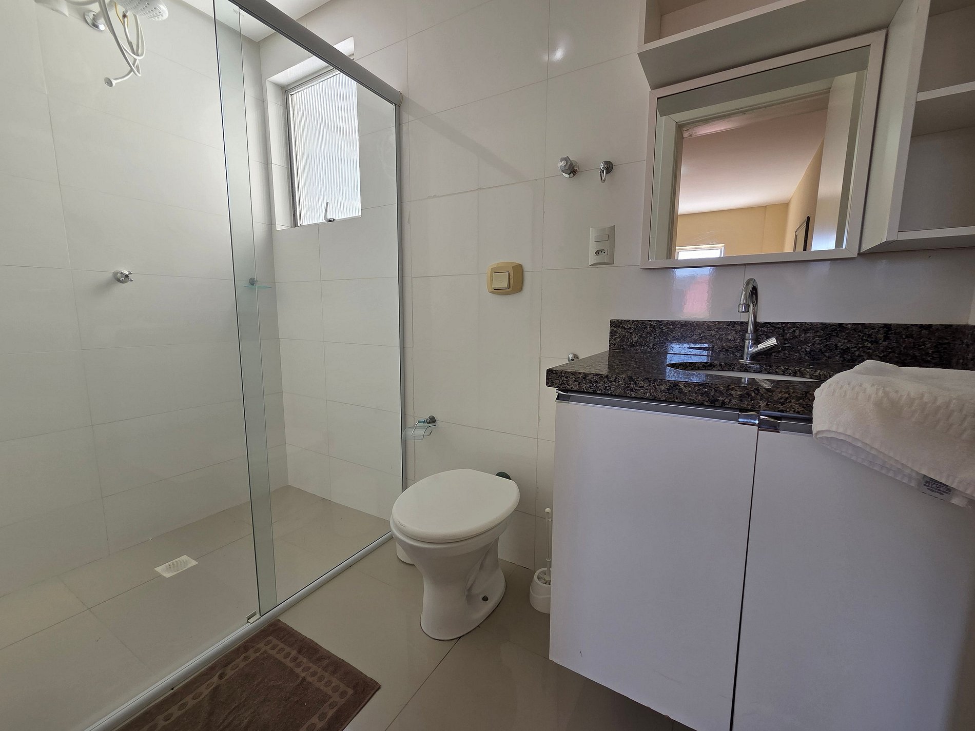 - 1 suíte com ar condicionado, guarda-roupa, cama casal;