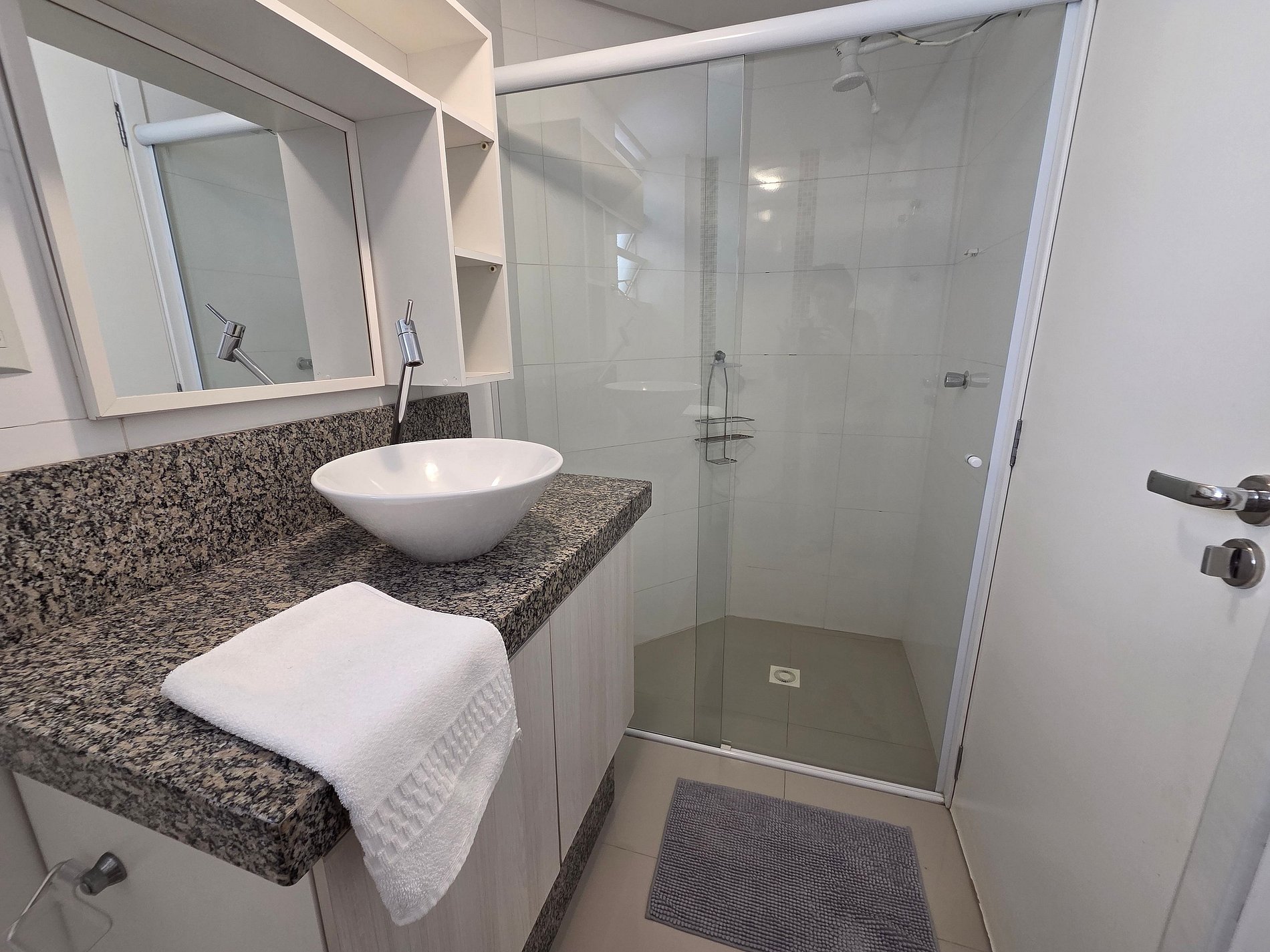 Apartamento localizado em Bombinhas, Praia canto grande. 180 metros do mar de dentro (Canto grande) 350 metros ( praia Mariscal) Fica em una principal decida que une 2 praias em poucos metros e o Skate Park. Rodeados de restaurantes. Acomoda 6 pessoas. 1 suite com cama de casal e ar condicionado. 1 dormitório com cama casal, ar condicionado e colchões Sala com sofá cama e ar condicionado. Cozinha com lavandería completa. 1 vaga de garagem