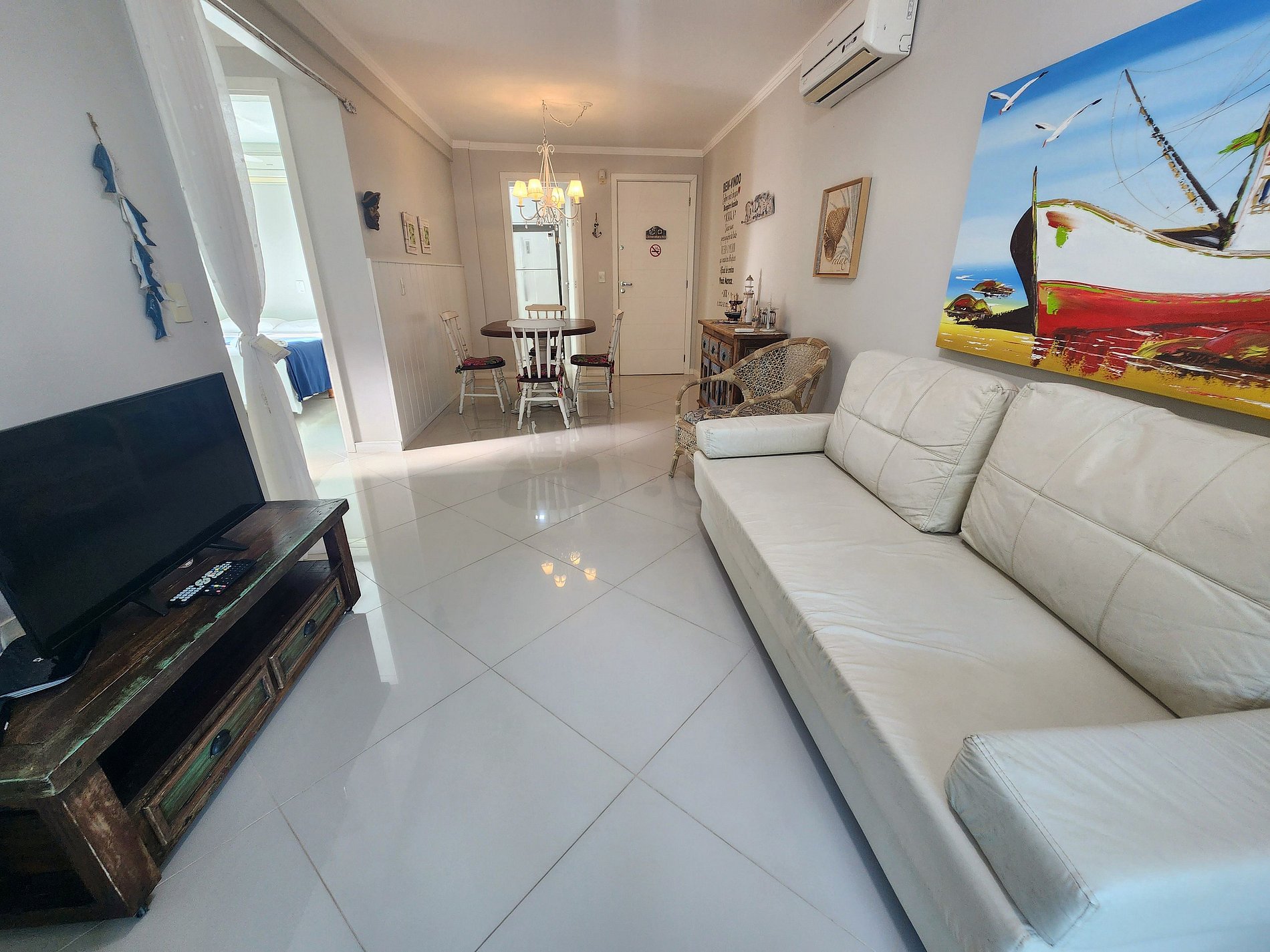 O apartamento é super aconchegante, com um toque de decoração praiana!