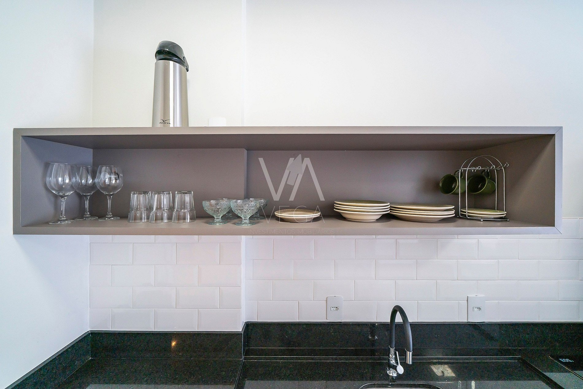 Cozinha equipada com utensílios, talheres, copos, panelas, cafeteira, jarra elétrica, torradeira, microondas, coocktop...