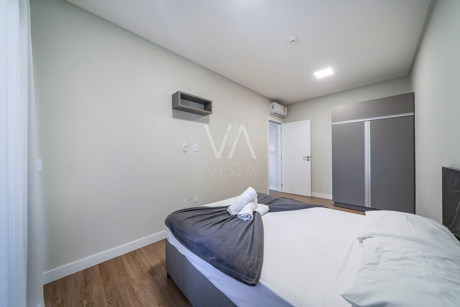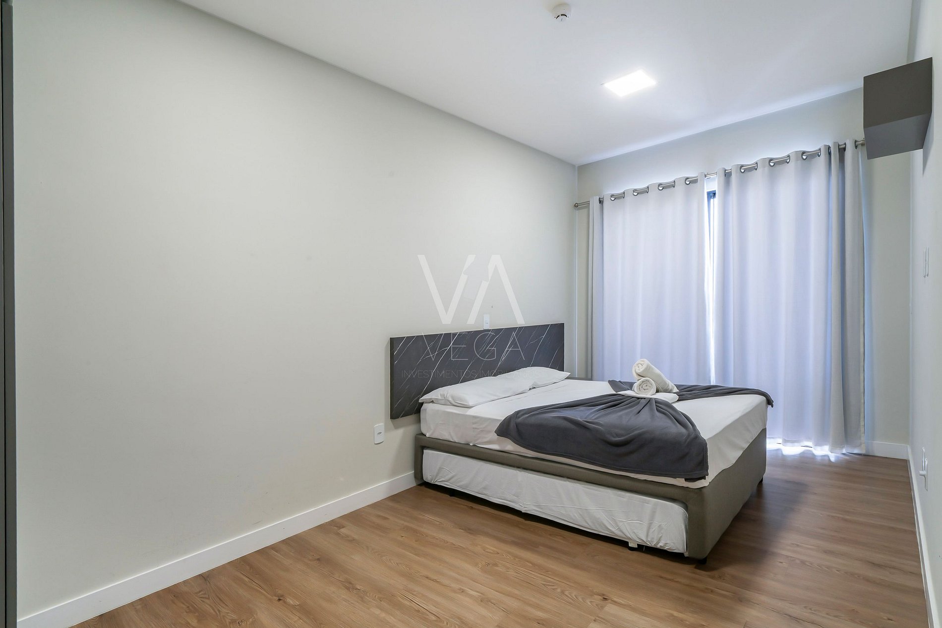 - 1 dormitórios com cama casal, cama auxiliar solteiro, guarda-roupa, ar condicionado, cortina blackout;