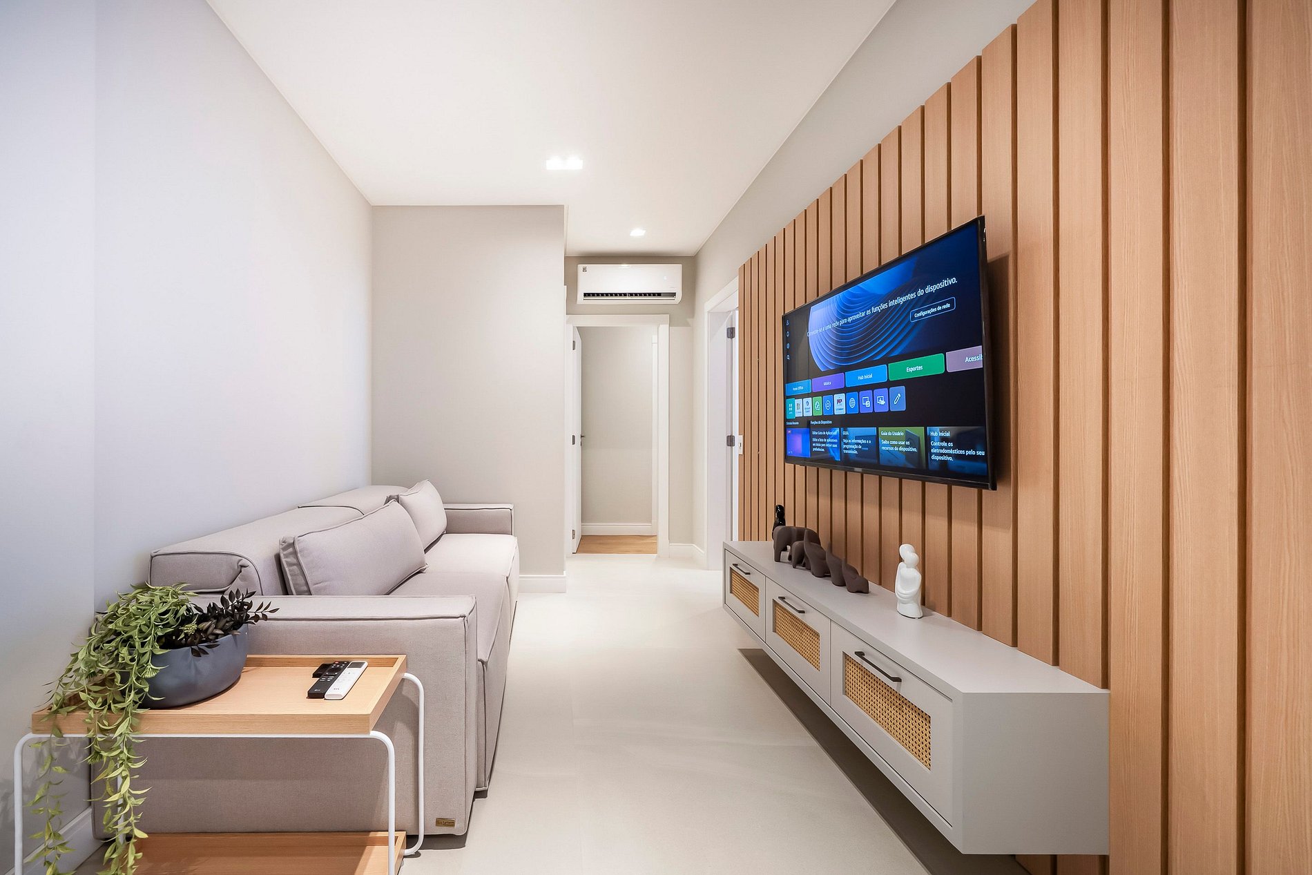 O apartamento inteiro é coberto por wi-fi, entenda o que cada cômodo possui.