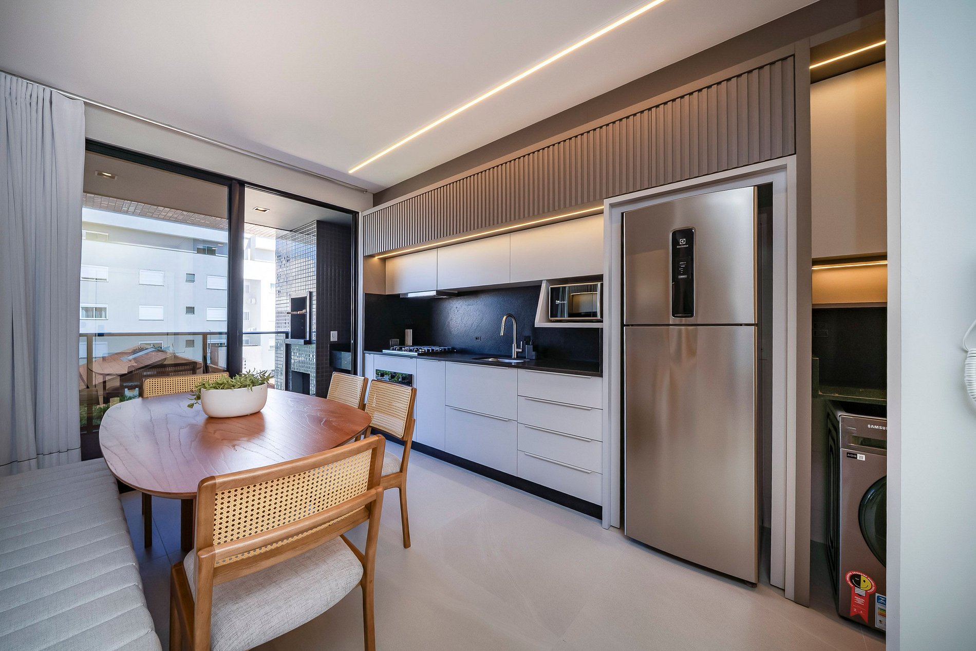 refrigerador, freezer, fogão, forno, micro-ondas, cafeteira, sanduicheira, jarra elétrica, liquidificador e itens básicos de cozinha;