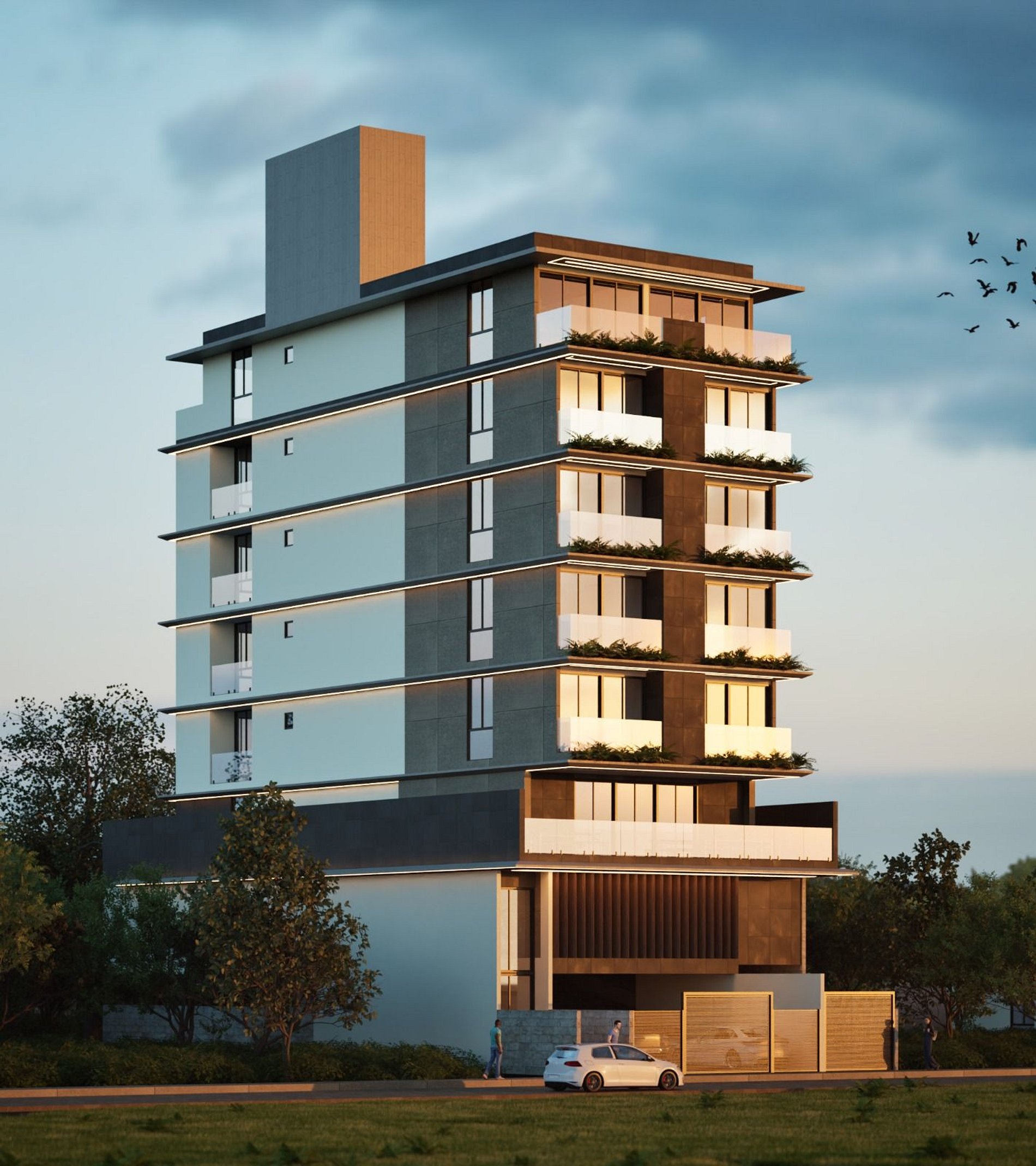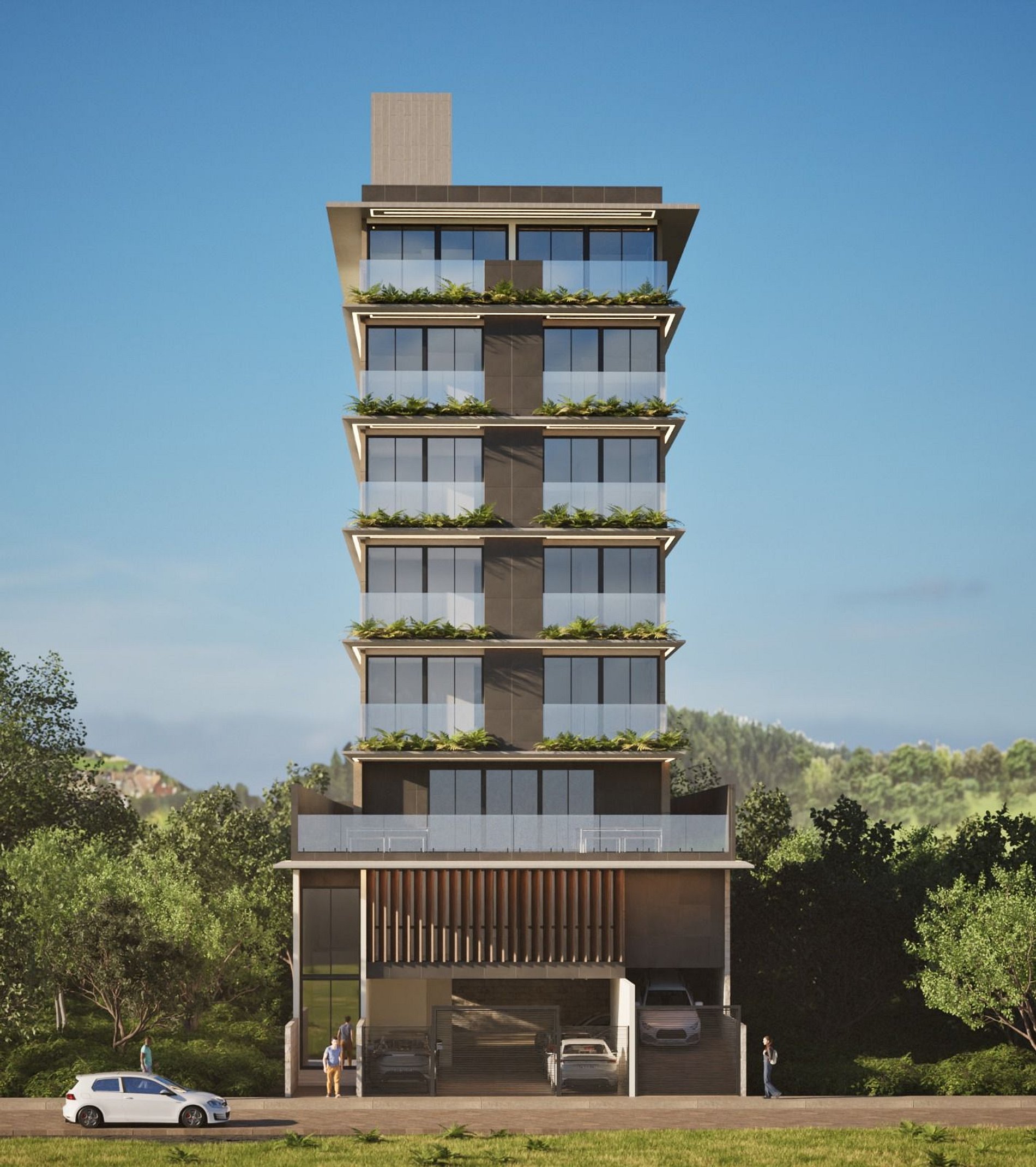 Edifício conta com uma Piscina borda infinita com vista completa ao mar, área gourmet com churrasqueira, salão de festa, playground, elevador e recepção.