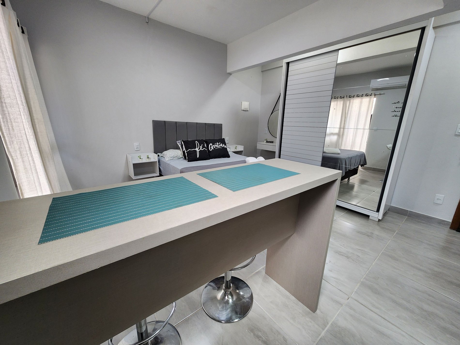Studio confortável e completo perfeito para 2 pessoas, com ar condicionado, cama de casal, Tv smart, cozinha equipada!