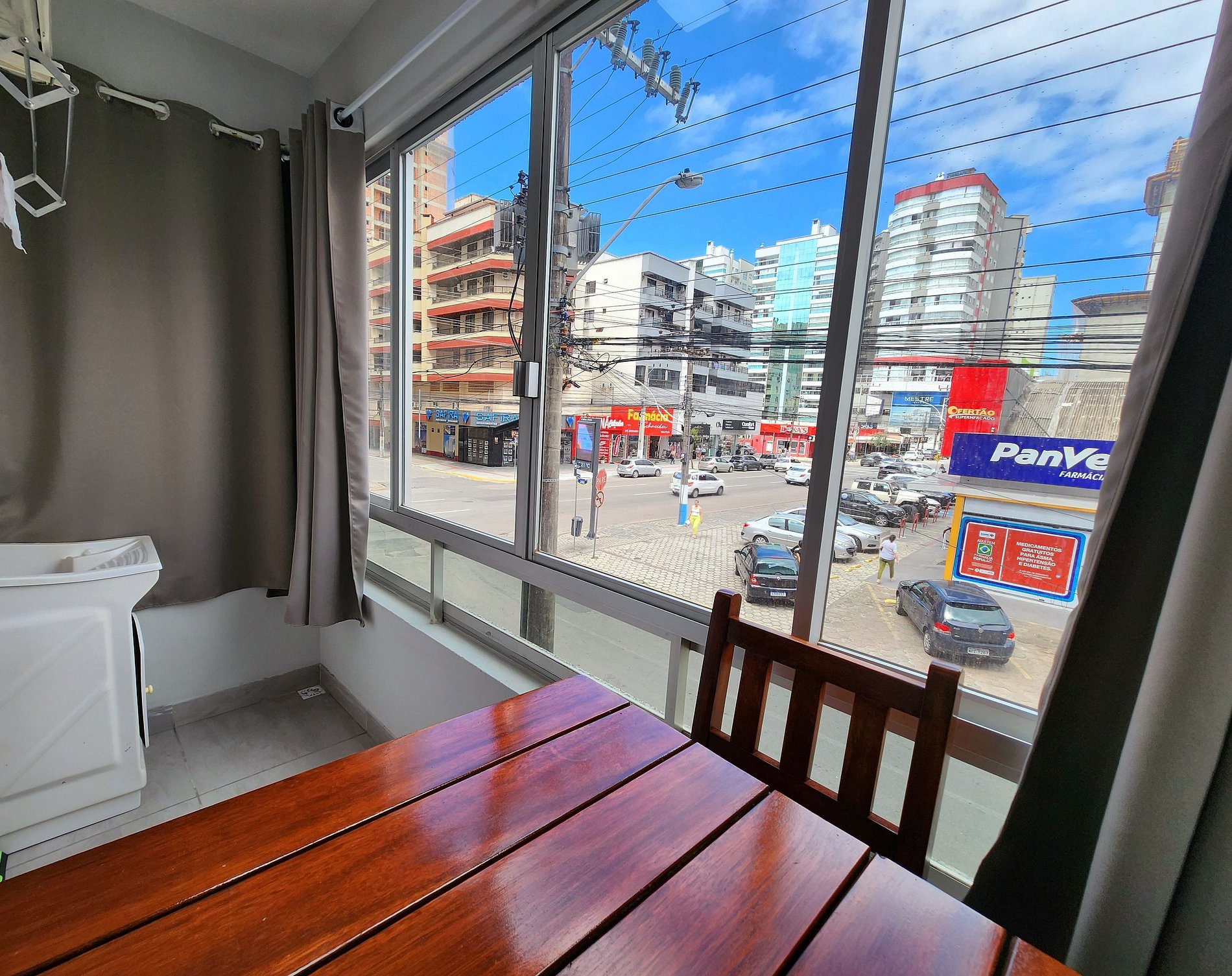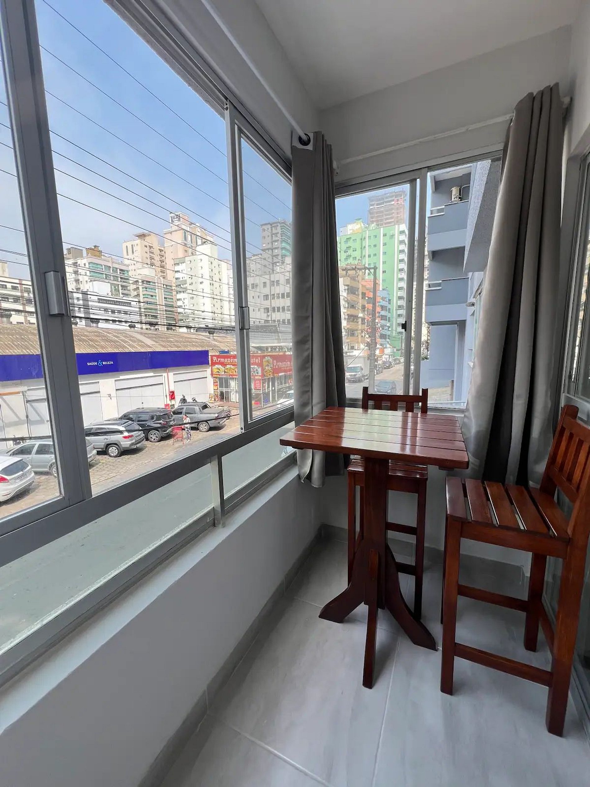 Possui uma pequena sacada com vista para a Av. Nereu Ramos com mesa e banquetas!