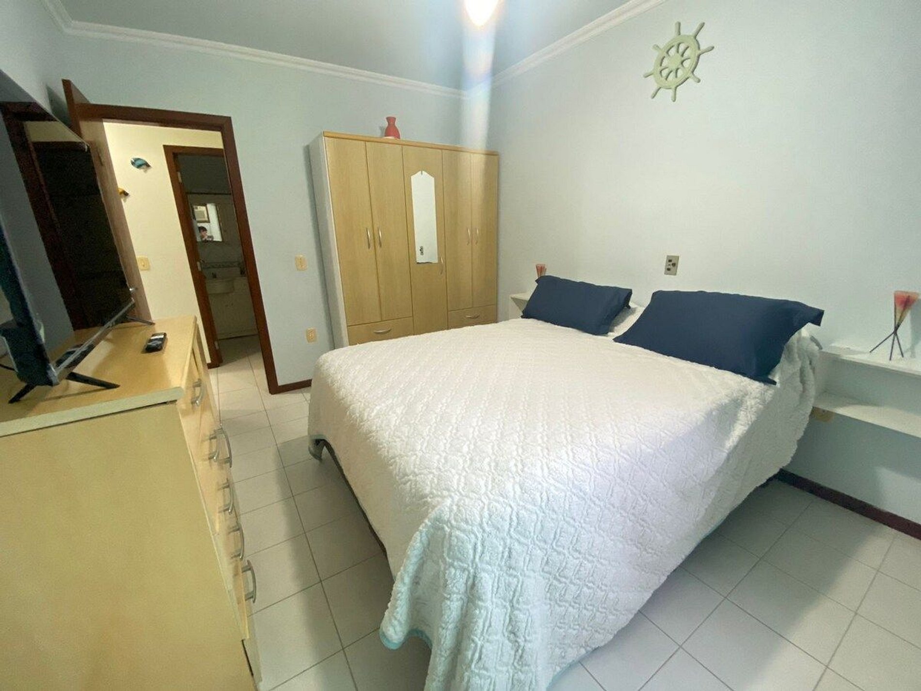 - 1 dormitório com cama king, ar condicionado, guarda roupa, ventilador de teto, Tv smart com controle;