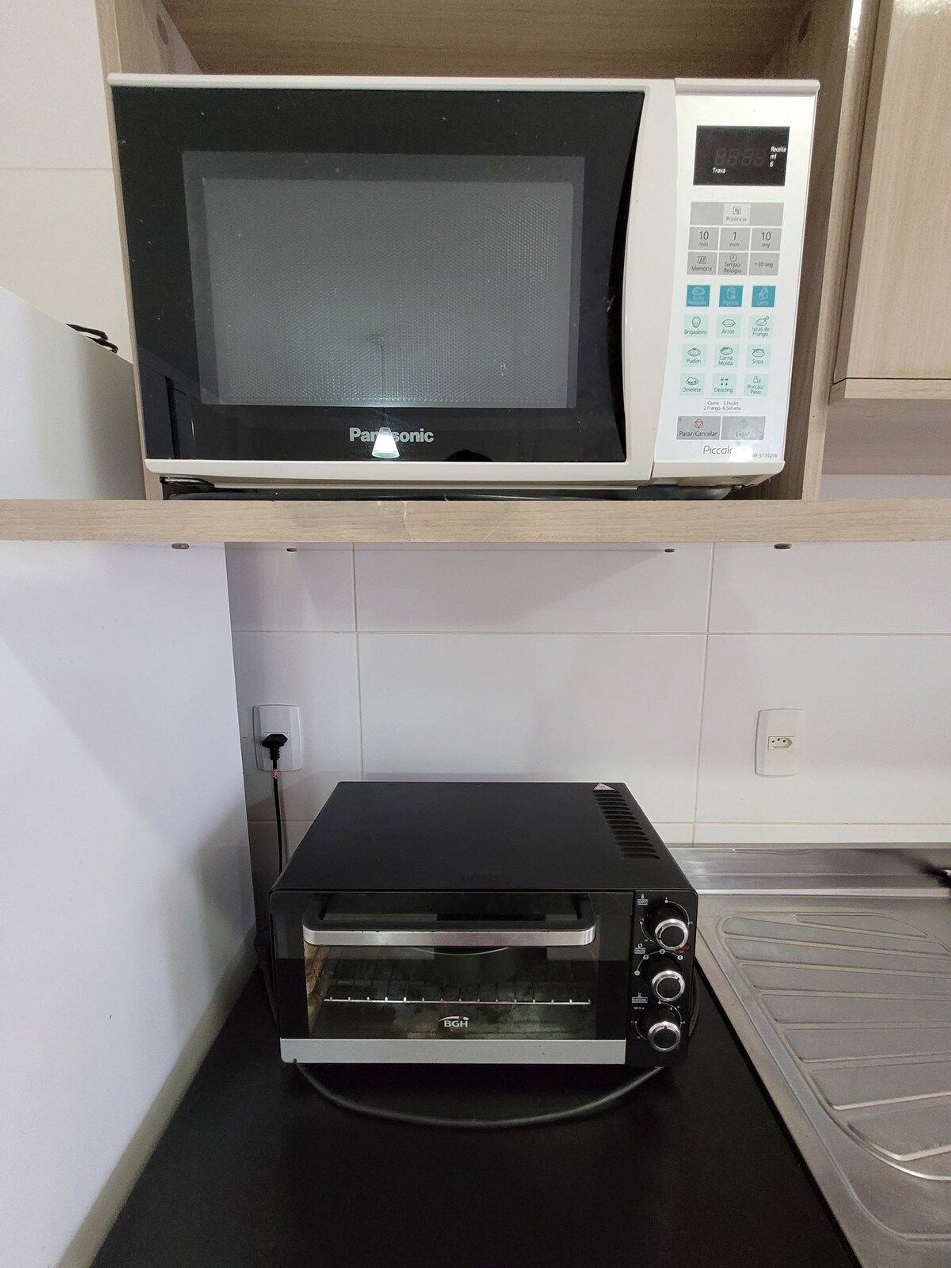 - Sacada com churrasqueira, espetos e grelha, mesa e cadeiras e tela na sacada para segurança;