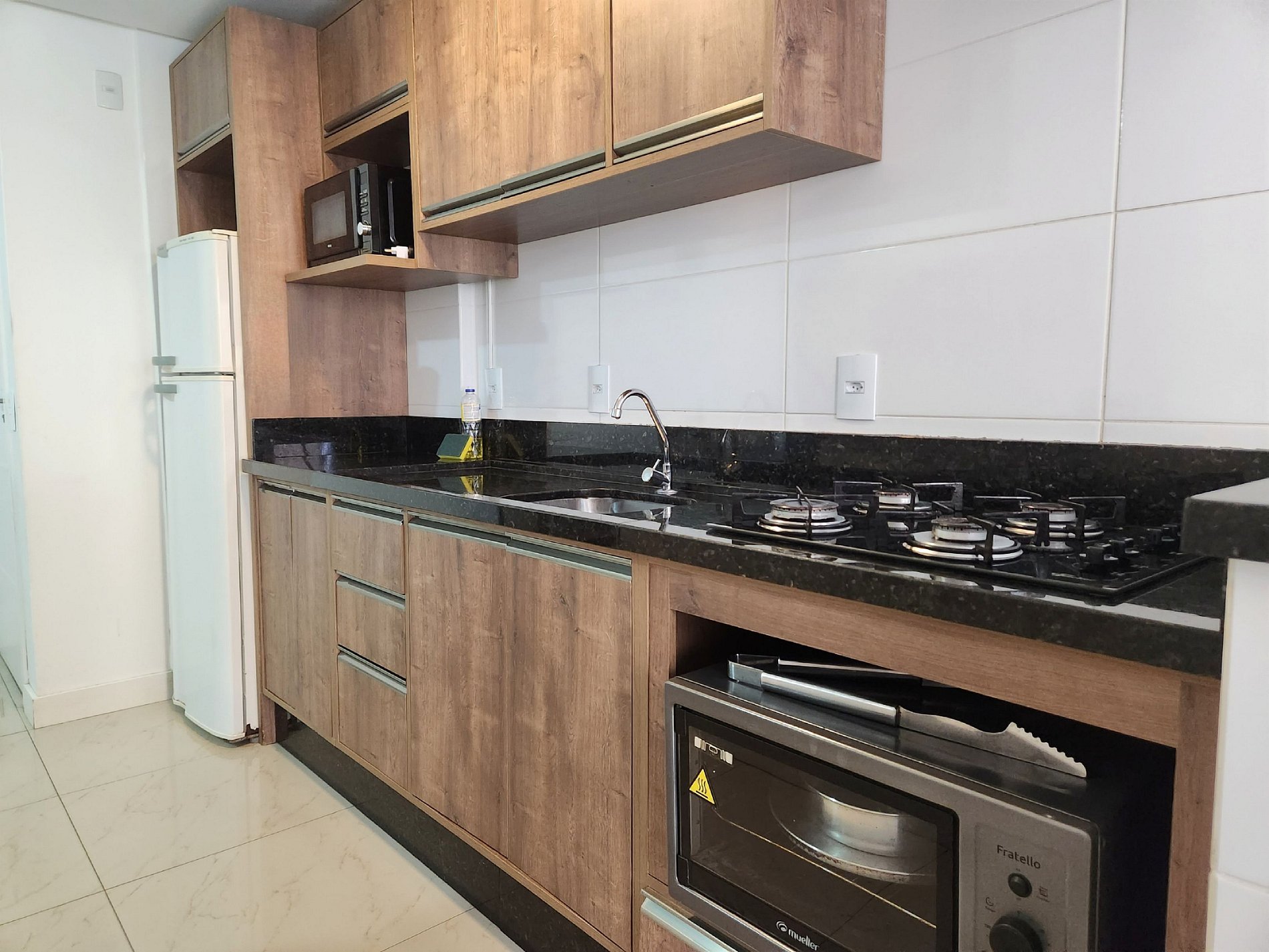 Completo possui ar condicionado nos 2 dormitórios, cozinha equipada, sacada com vista para a piscina com churrasqueira, Wi-fi, vaga de garagem, perfeito para uma família de 5 pessoas!