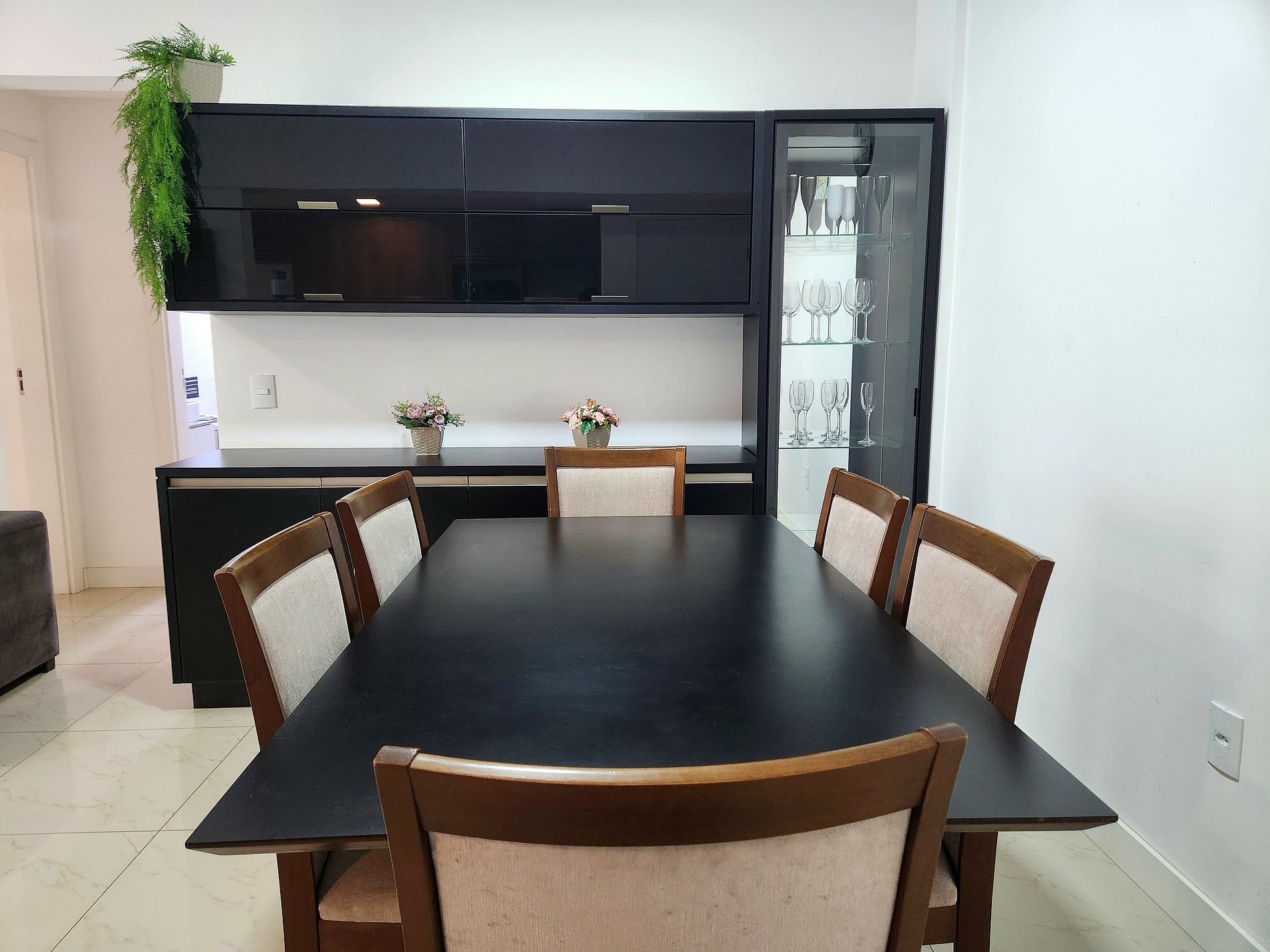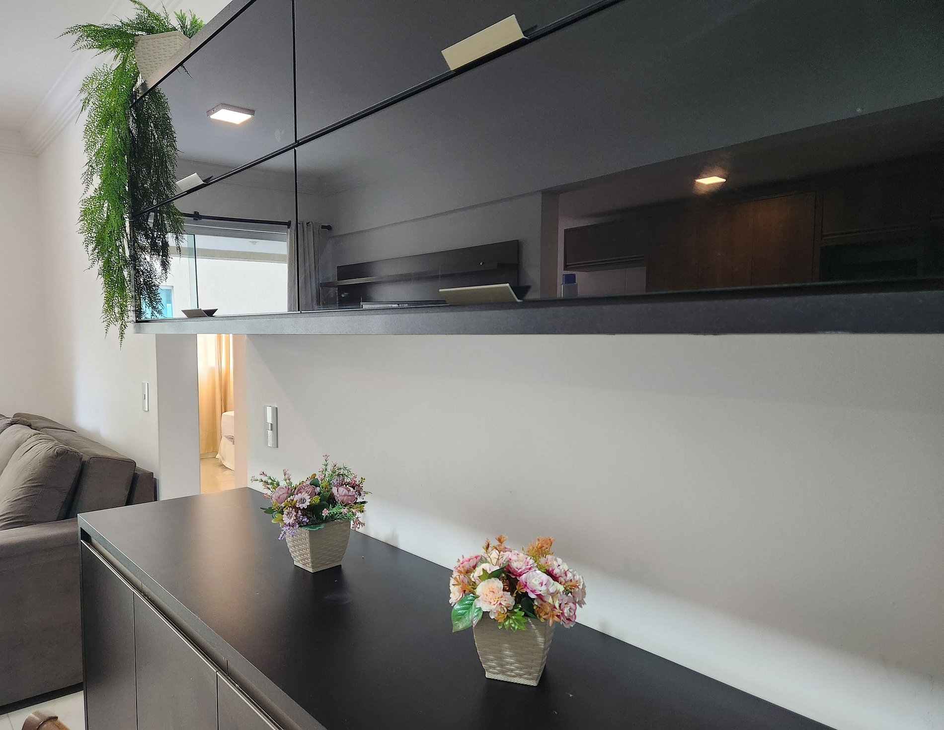 Completo possui ar condicionado nos 2 dormitórios, cozinha equipada, sacada com vista para a piscina com churrasqueira, Wi-fi, vaga de garagem, perfeito para uma família de 5 pessoas!