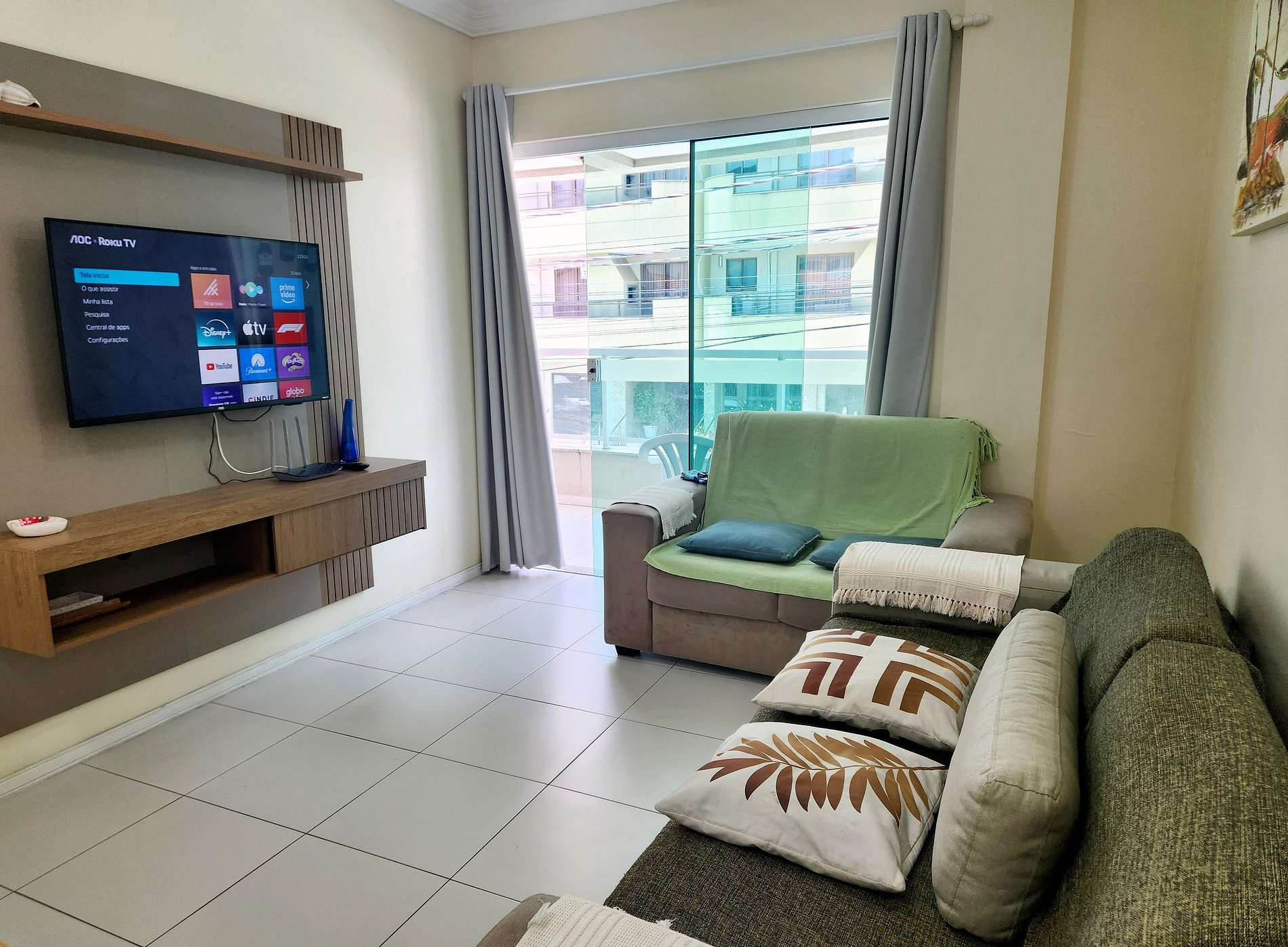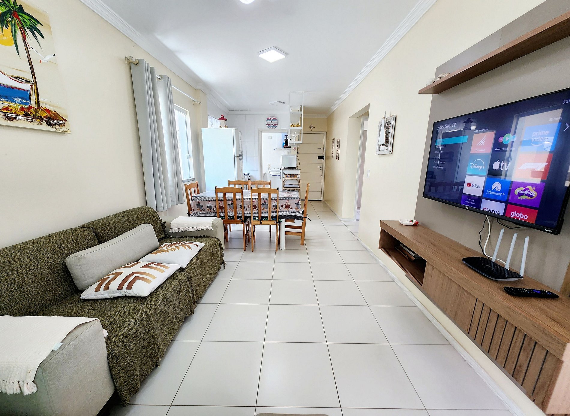 Apartamento a 180 mtrs da Avenida principal em Bombas, Bombinhas. Ótima localização, perto dos restaurantes, lojas, bares, mercados e 200 mtrs do mar. O apartamento é super completo com utensílios, tem 2 dormitórios sendo 1 suite com ar condicionado, 1 banheiro social com chuveiro, cozinha com utensílios, maquina de lavar, sacada com churrasqueira.
