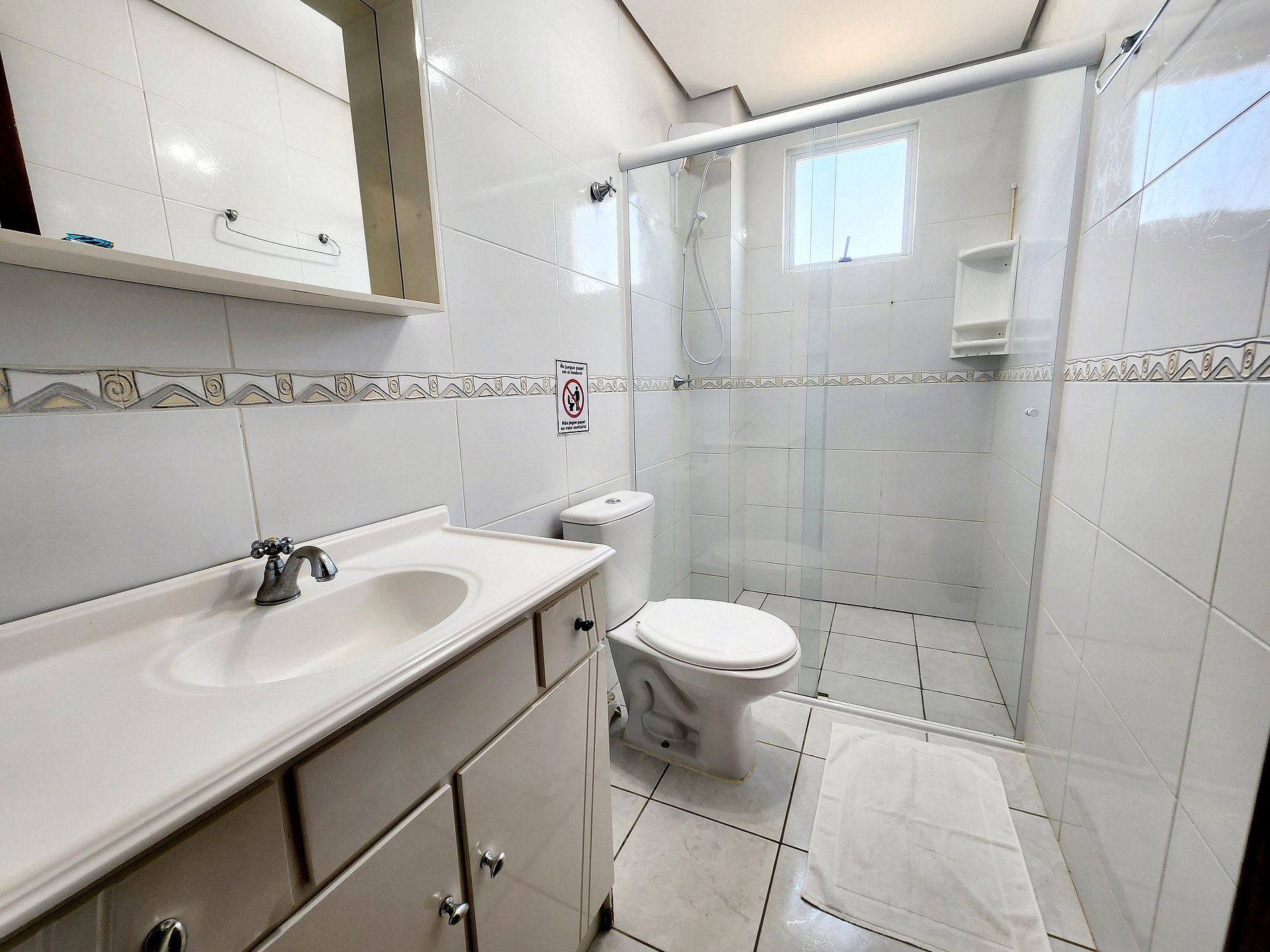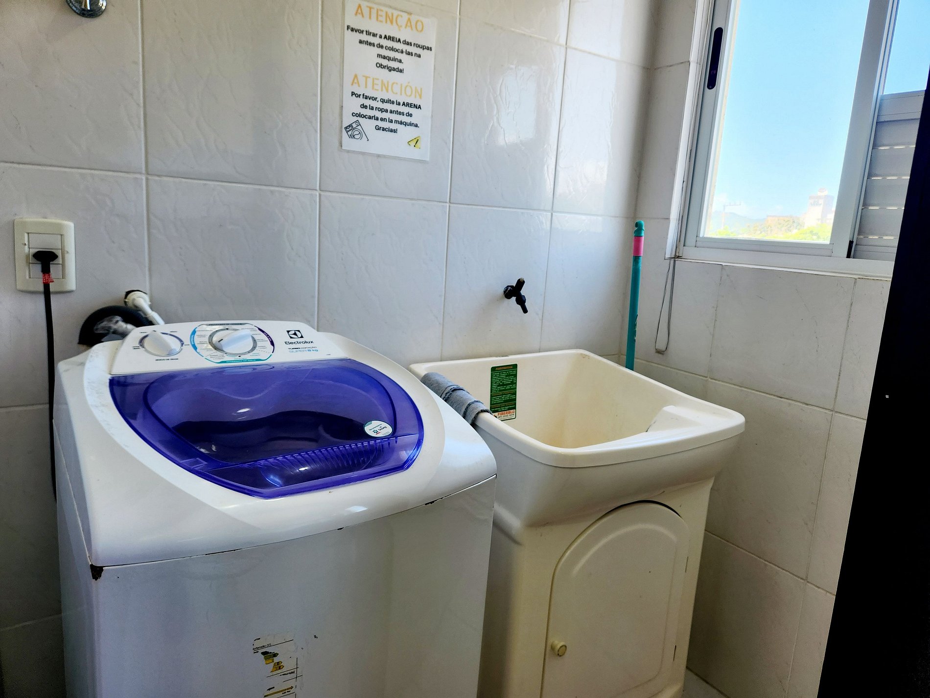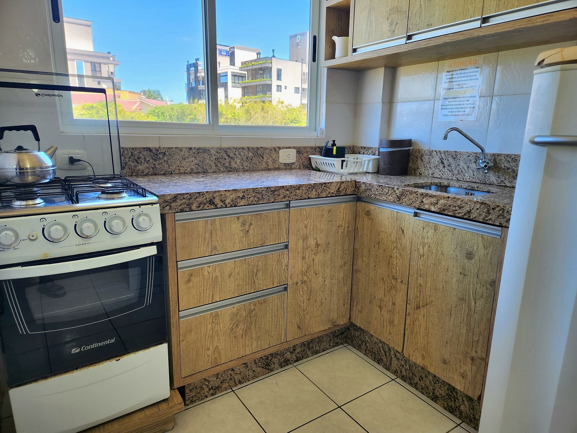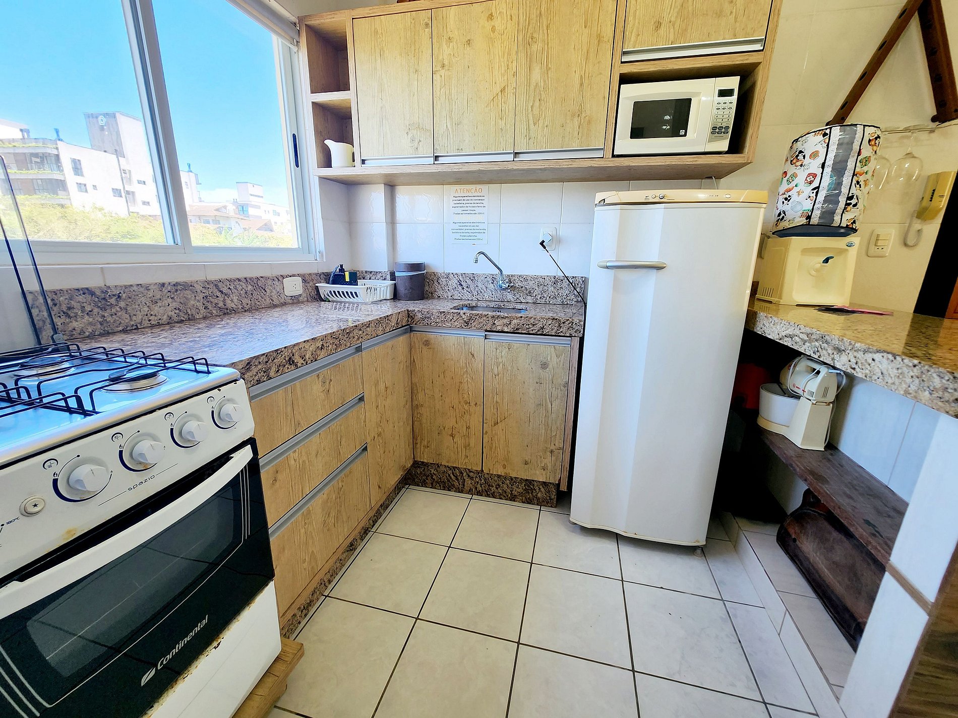 Possui 2 dormitórios com ar condicionado em cada e 2 camas de casal mais 2 colchões de solteiro. Sacada com churrasqueira, cozinha com bancada café e mesa de 4 lugares, sala com Tv smart, vaga de garagem descoberta.
