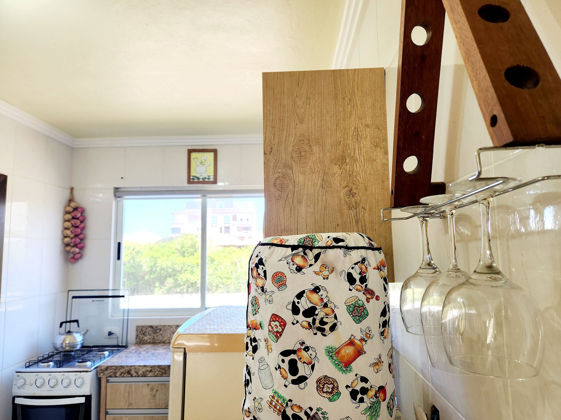 - Cozinha equipada com utensílios, bancada café, geladeira, fogão, micro-ondas, liquidificador, torradeira, panelas, louças...