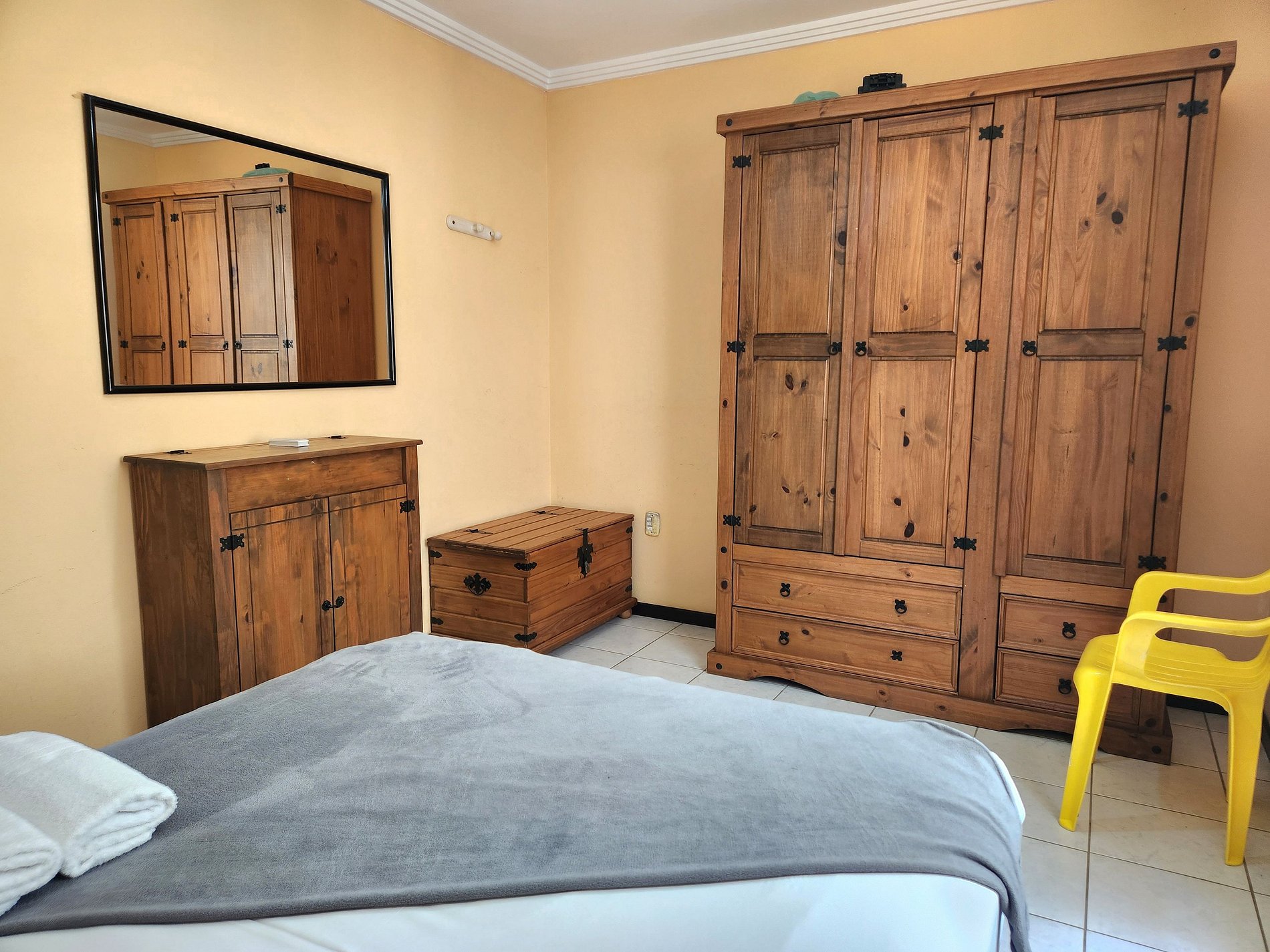 - 1 dormitório com 1 cama casal e 1 colchão solteiro, ar condicionado, armário, ventilador de teto;