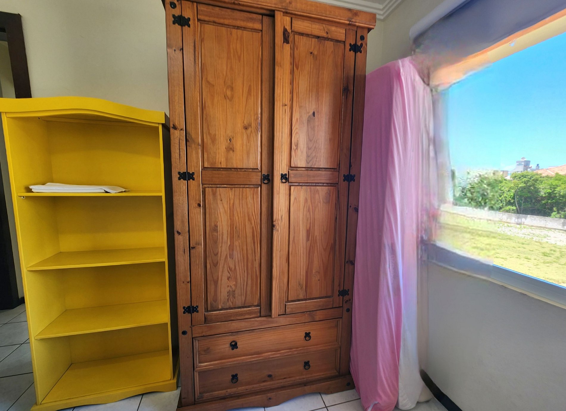 - 1 dormitório com 1 cama casal e 1 colchão solteiro, ar condicionado, guarda roupa, ventilador de teto;