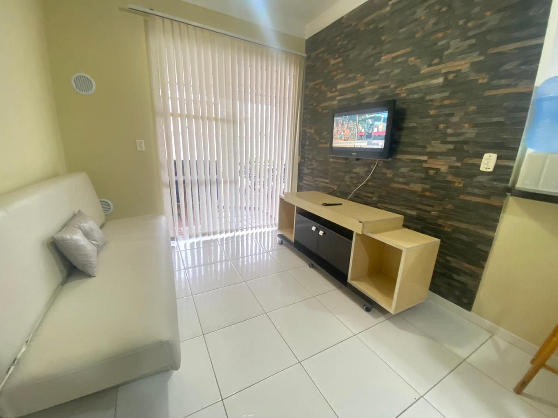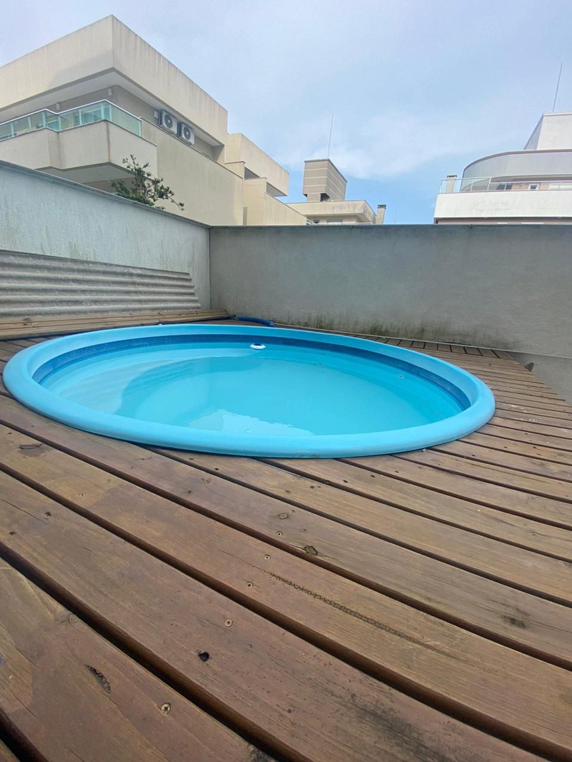 Nosso apartamento é térreo possui um pátio com piscina privada pequena, possui 3 dormitórios todos com ar condicionado sendo 1 suíte, sala com tv, cozinha completa, banheiro completo, 2 vagas de garagem, churrasqueira e mesas e cadeiras para curtir.